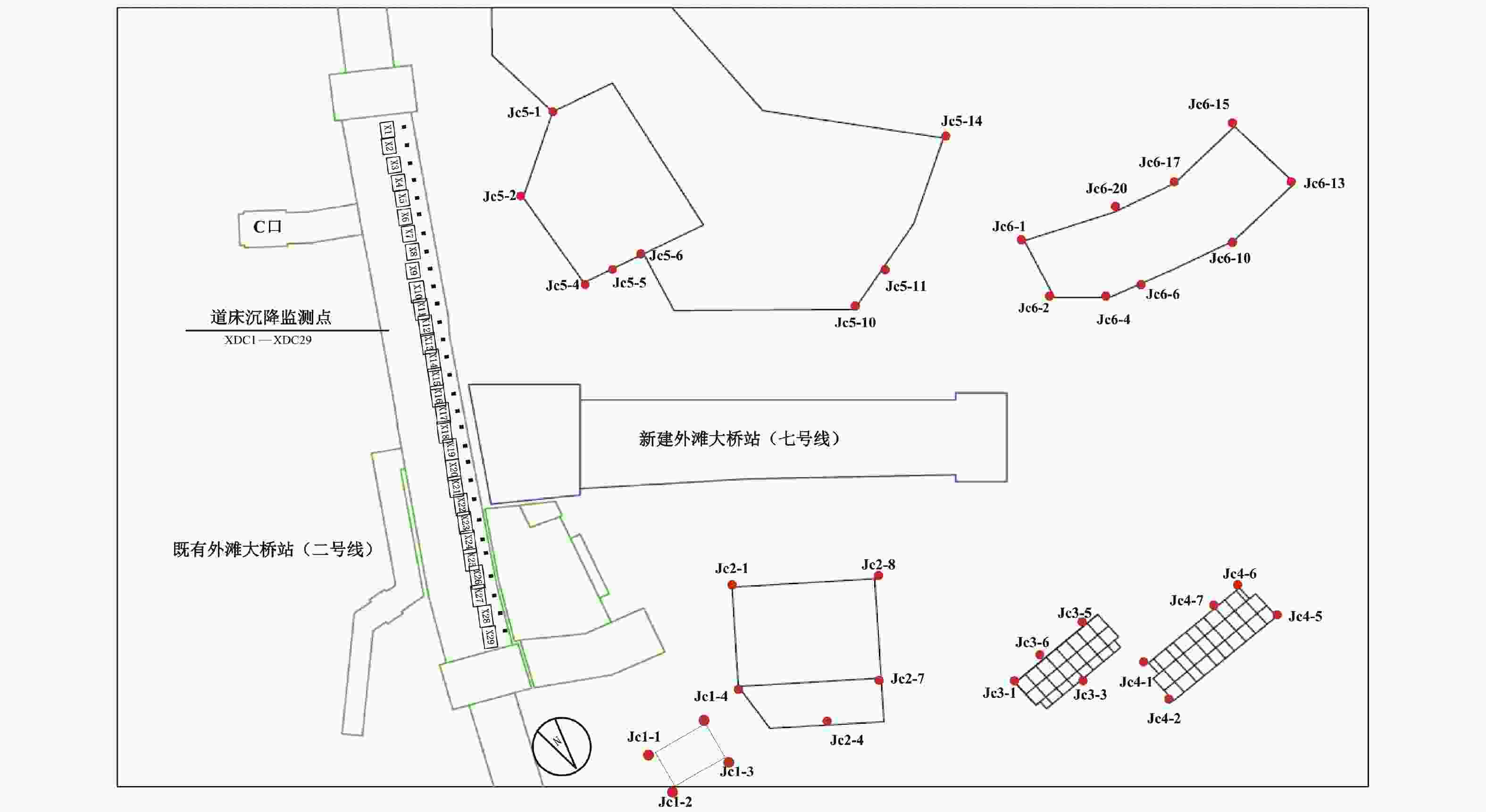 图  5  外滩大桥站基坑周边建筑监测平面图