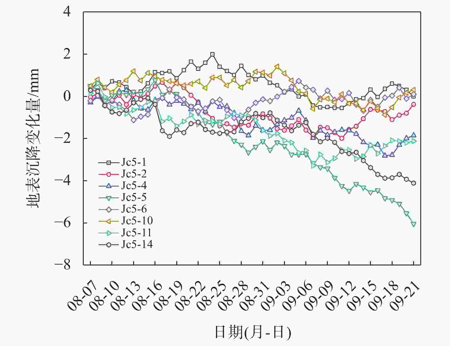 图  9  基坑开挖后来福士广场沉降历时曲线