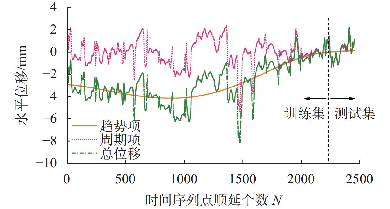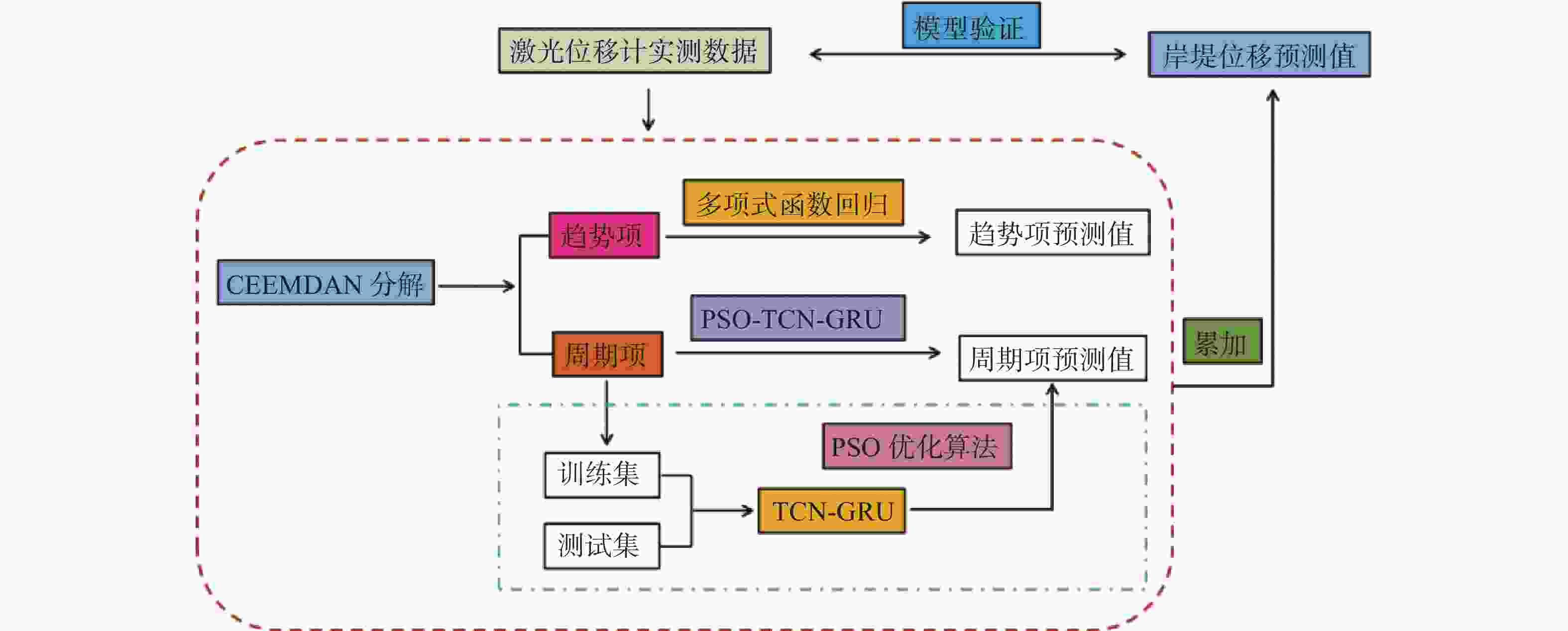摘要: 过江顶管由于施工作业面较小,江边堆填荷载较大,影响江堤稳定性,提前预测江堤位移对安全施工具有重要意义。通过自适应噪声的完备集合经验模态分解方法(CEEMDAN),将非线性非稳定性的监测数据分解为趋势项和周期项,提出一种适合于江堤变形的智能预测模型(CTG)。模型针对趋势项采用多项式函数预测;针对周期项,采用结合粒子群优化算法和时间卷积网络−门控循环单元混合模型的PSO-TCN-GRU算法进行预测。将算法应用于段塘顶管施工项目,结果表明该智能算法优于其他经典的神经网络预测方法,具有一定的推广价值,可为同类工程变形预测提供参考。另外,建议进行监测数据预测时先进行数据分解和特征提取,有利于改善模型预测结果。
