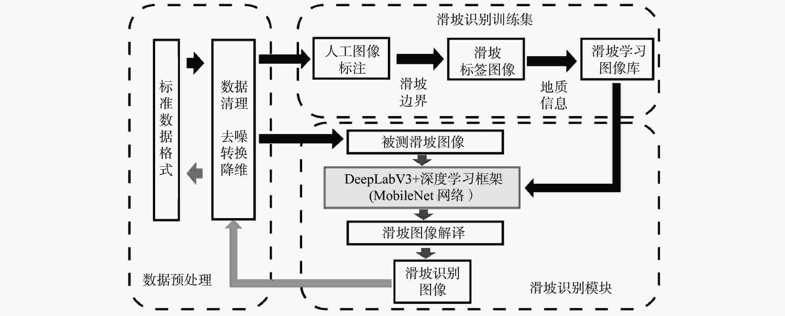 摘要: 传统的滑坡编录统计通常采用人工现场踏勘形式,效率低下且可能遗漏部分区域。目前,主流的基于图像识别的滑坡编录技术通常需要高性能设备,并需要较高的模型训练成本,因而不适合在滑坡现场快速筛查中应用。本研究引入MoblieNet轻量化模型,使用DeepLabV3架构对航空摄影图像中的滑坡进行快速智能识别和边界定位。与传统的卷积神经网络(CNN)图像分割方法相比,该方法可以在传统方案10%的训练时间内,实现超过90%的准确度,可以更好地契合工程上对于显性滑坡快速智能识别需求,适用于大面积区域滑坡点的快速筛查与编录。