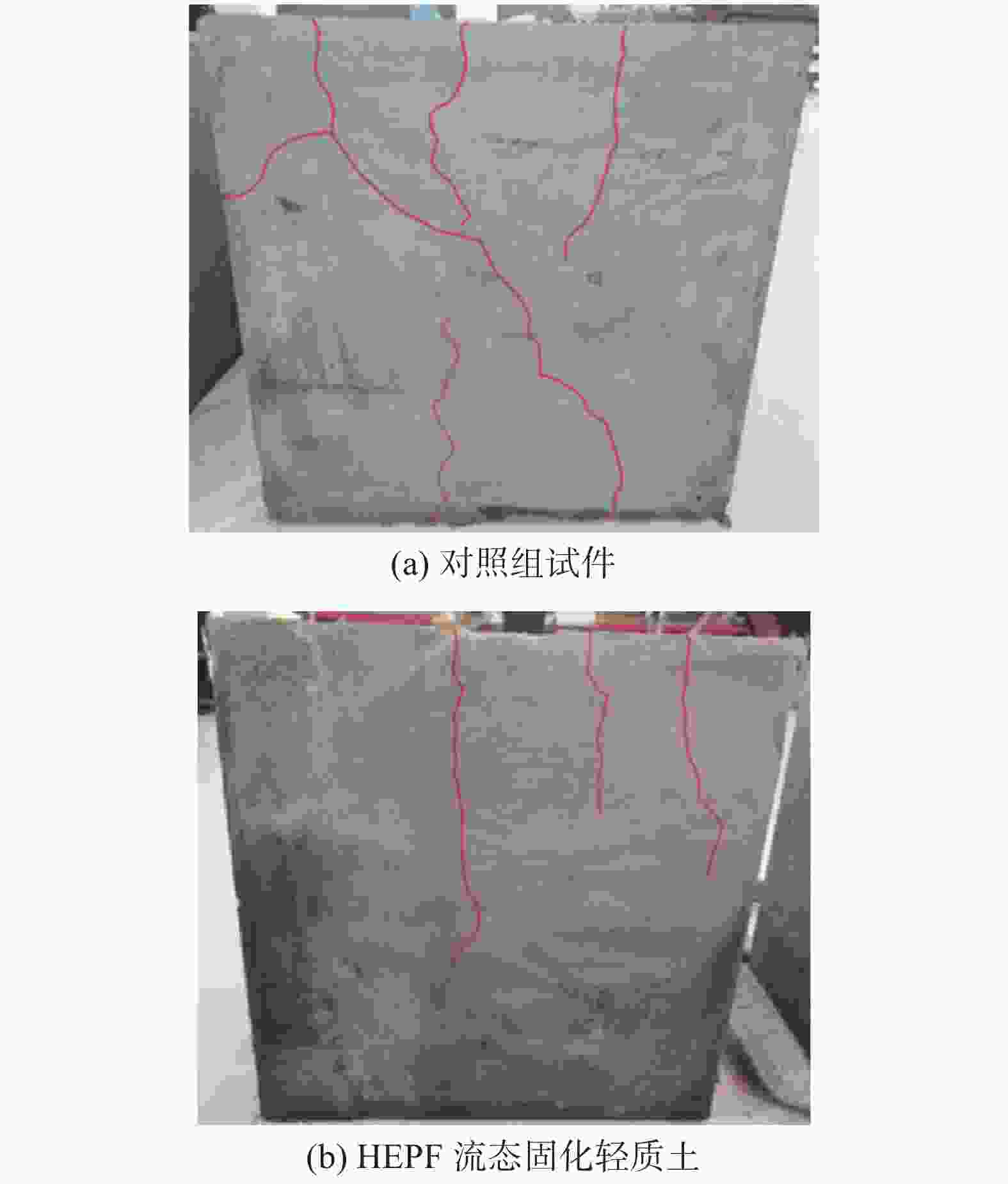图  14  对照组及HEPF流态固化轻质土疲劳加载试验试件裂缝情况图