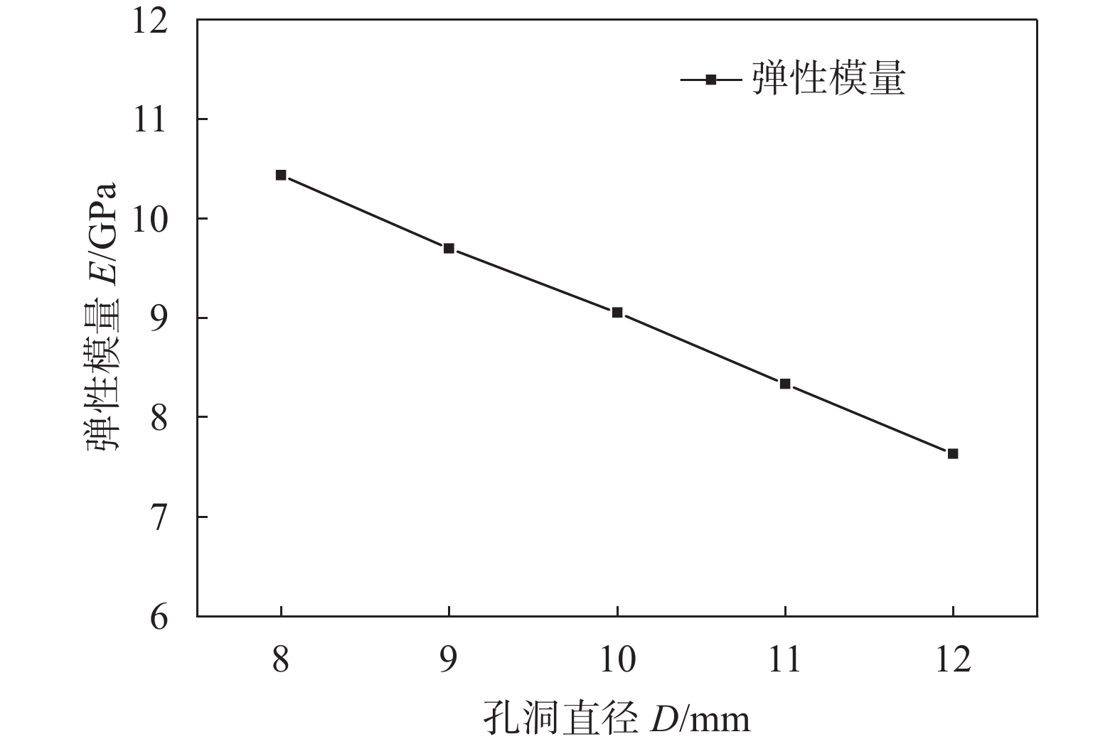 图  14  试样弹性模量随孔洞直径变化曲线