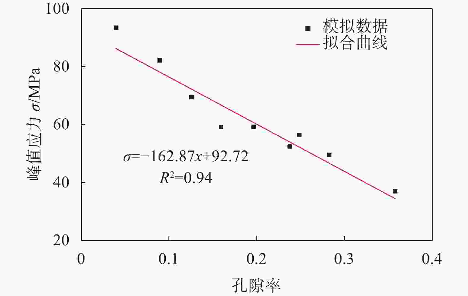 图  17  峰值应力−孔隙率的拟合曲线