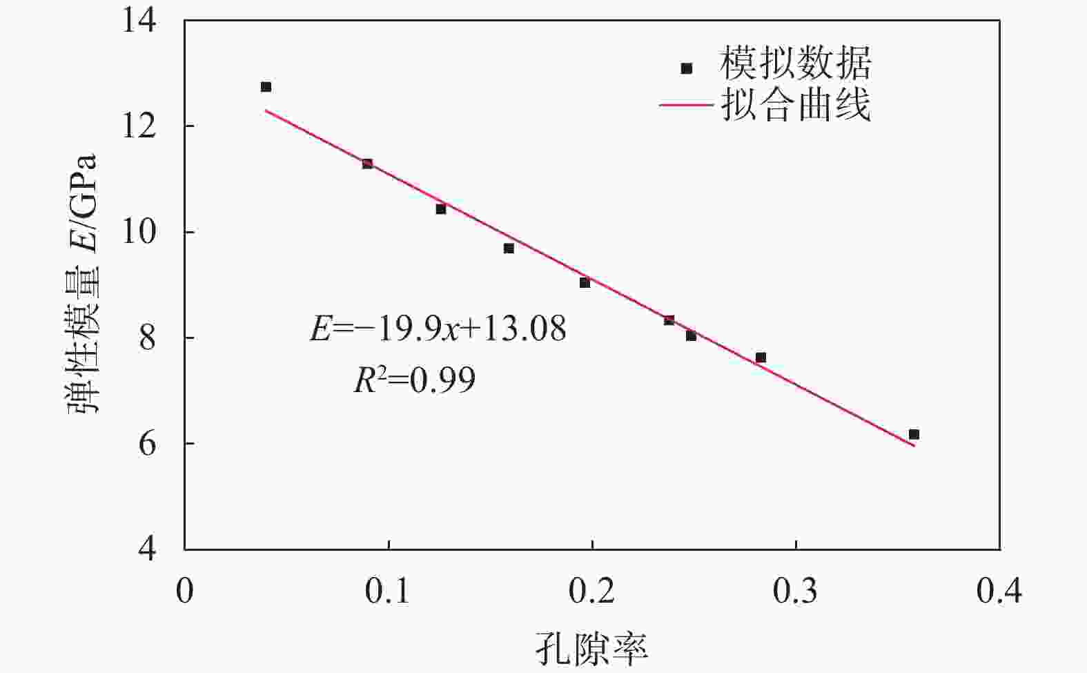 图  18  弹性模量−孔隙率的拟合曲线