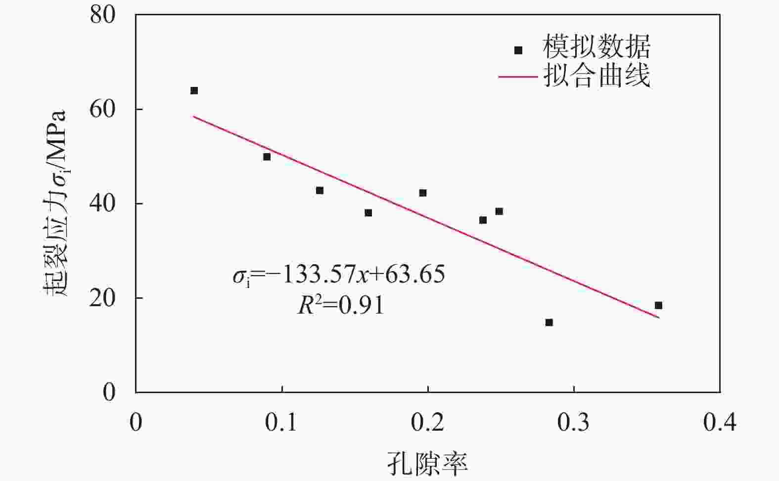图  19  起裂应力−孔隙率的拟合曲线
