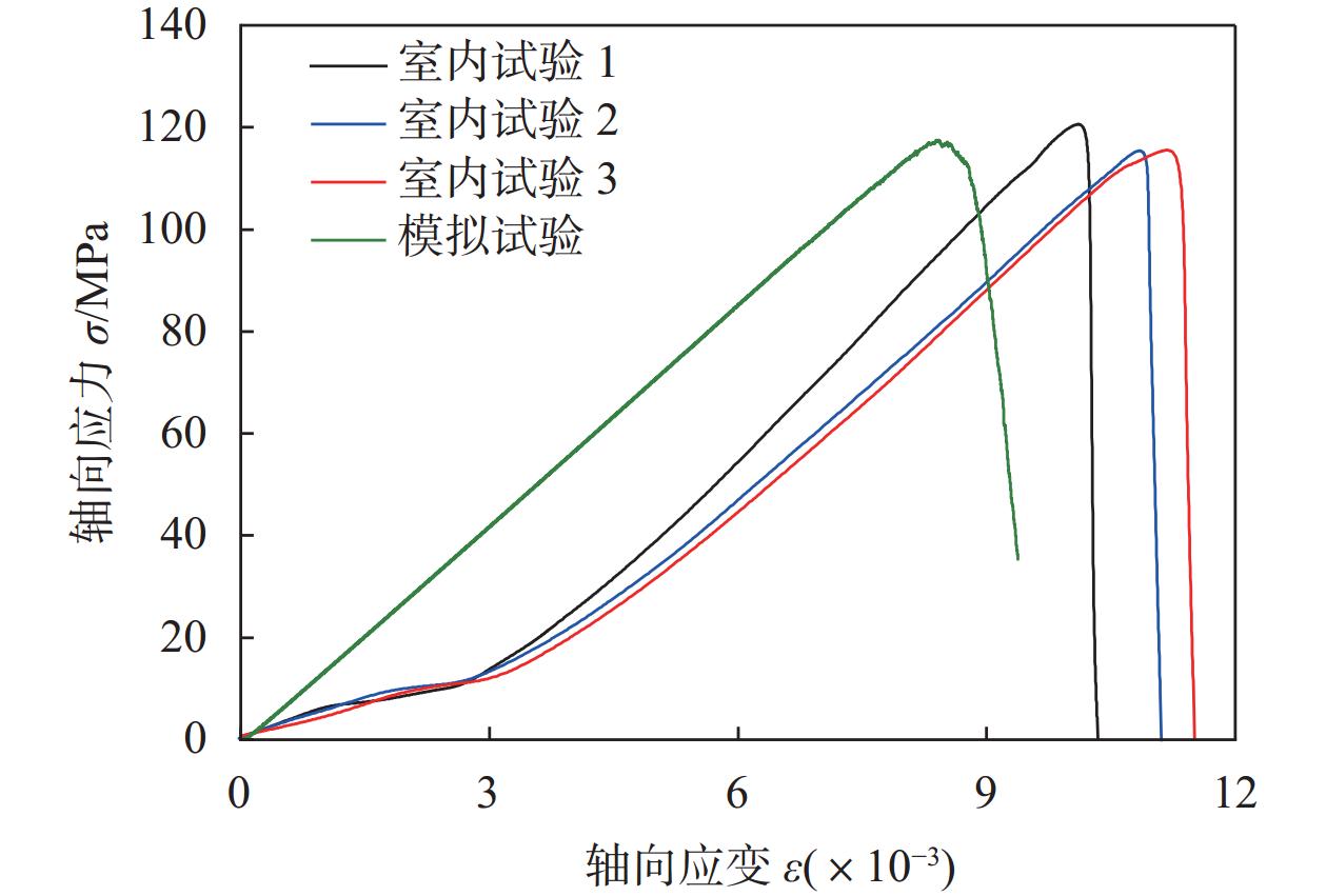 图  3  完整试样室内试验与数值模拟应力–应变曲线图