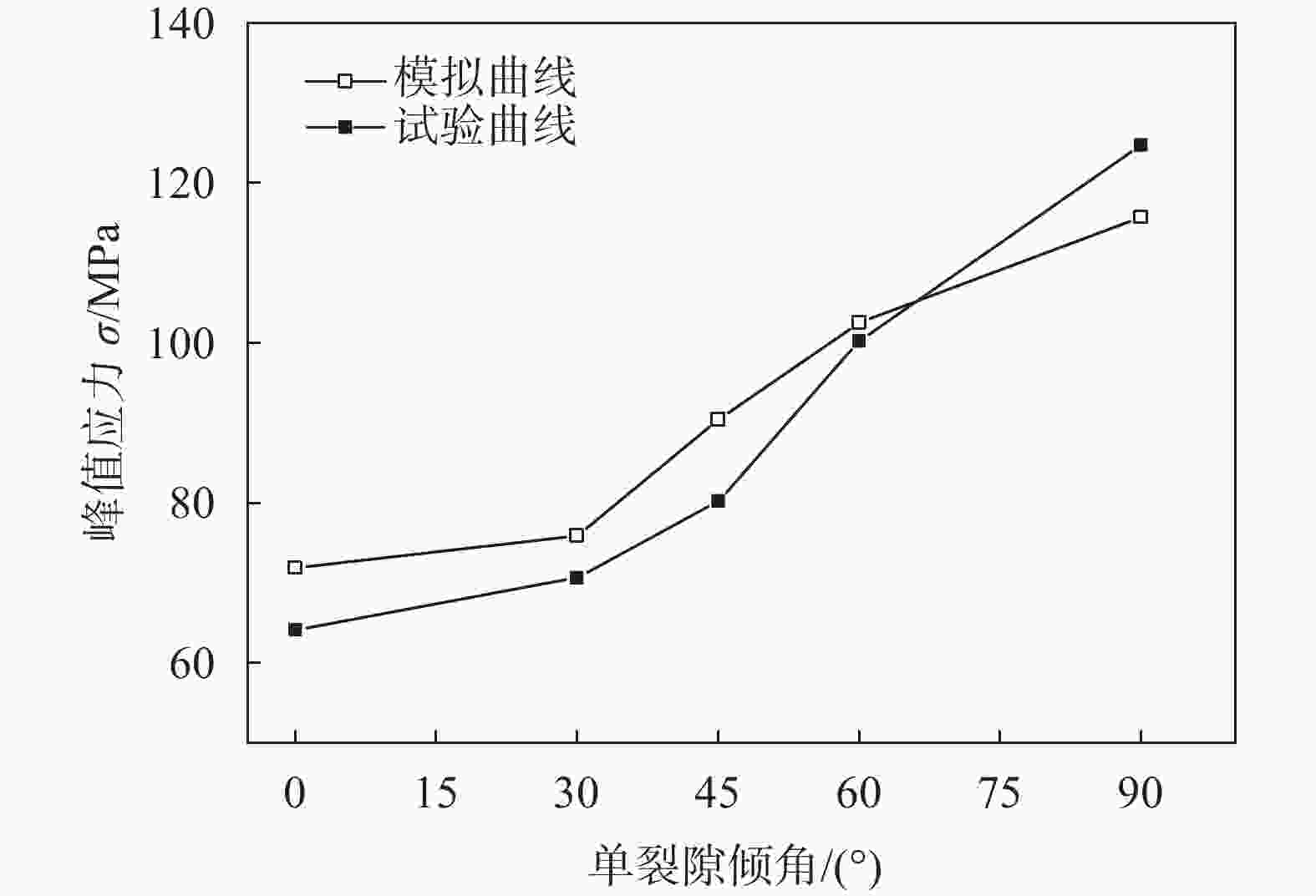 图  4  单轴压缩下单裂隙砂岩峰值应力试验与模拟数值对比
