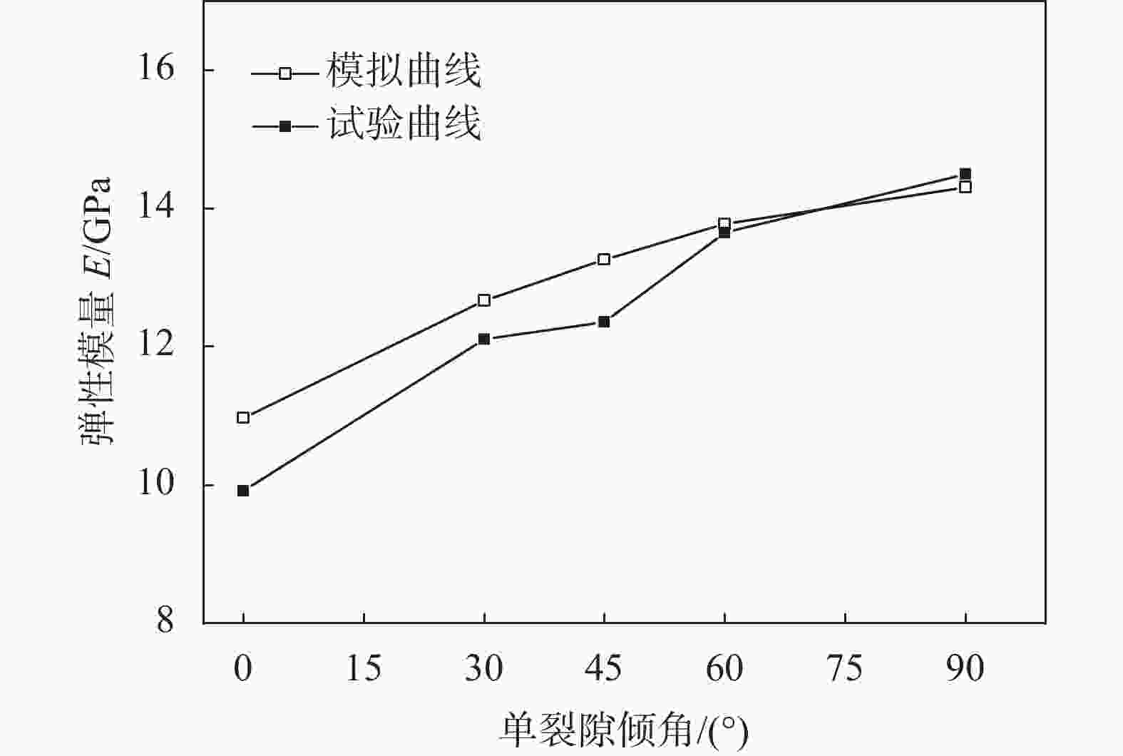 图  5  单轴压缩下单裂隙砂岩弹性模量试验与模拟数值对比
