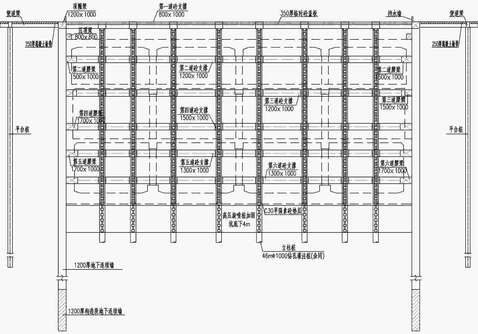 图  3  南基坑四线段基坑支护横剖图