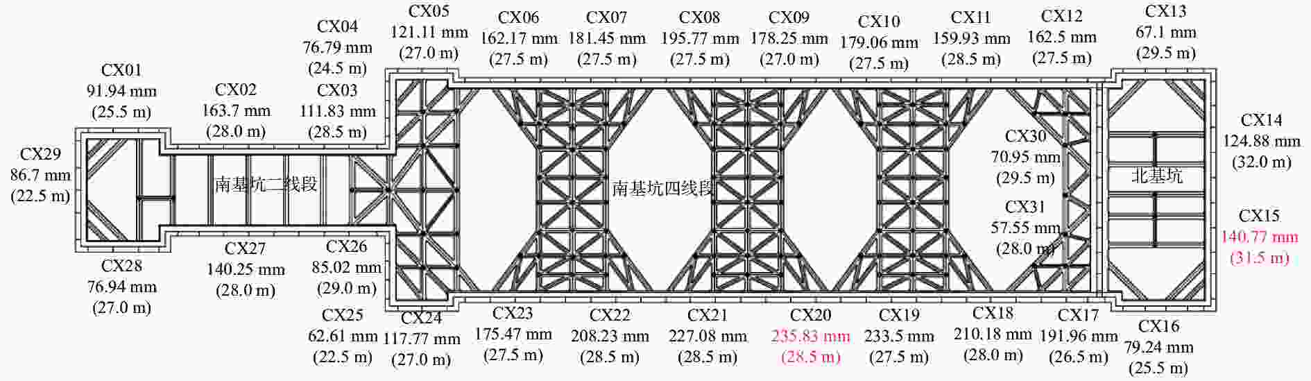 地连墙水平位移CX42.0(北基坑)