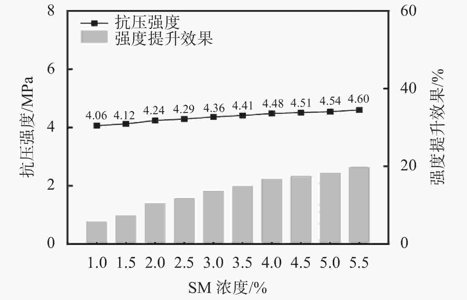 图  2  改性生土试块抗压强度随SM涂刷浓度的关系