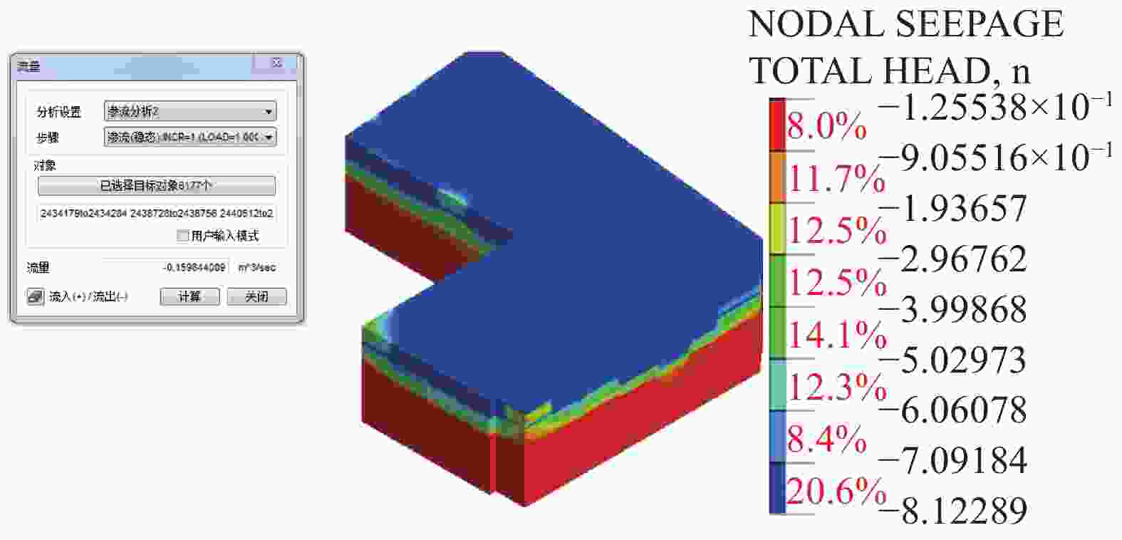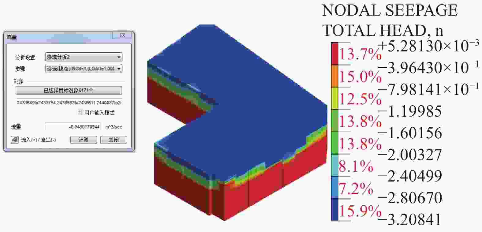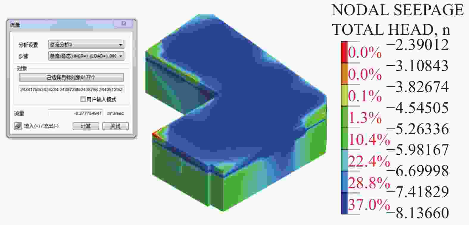 图  7  止水帷幕方案坑底出水量及总水头云图