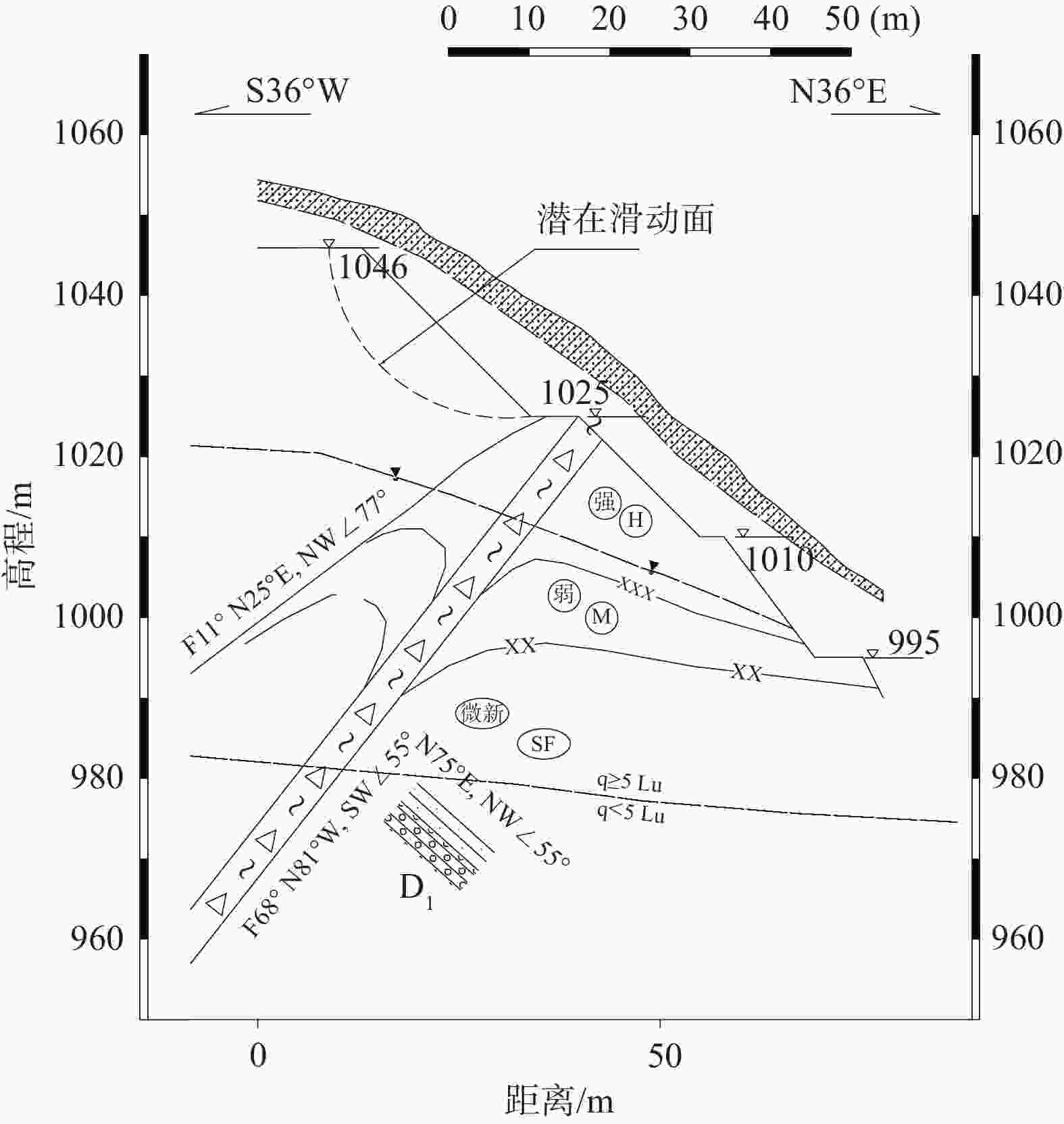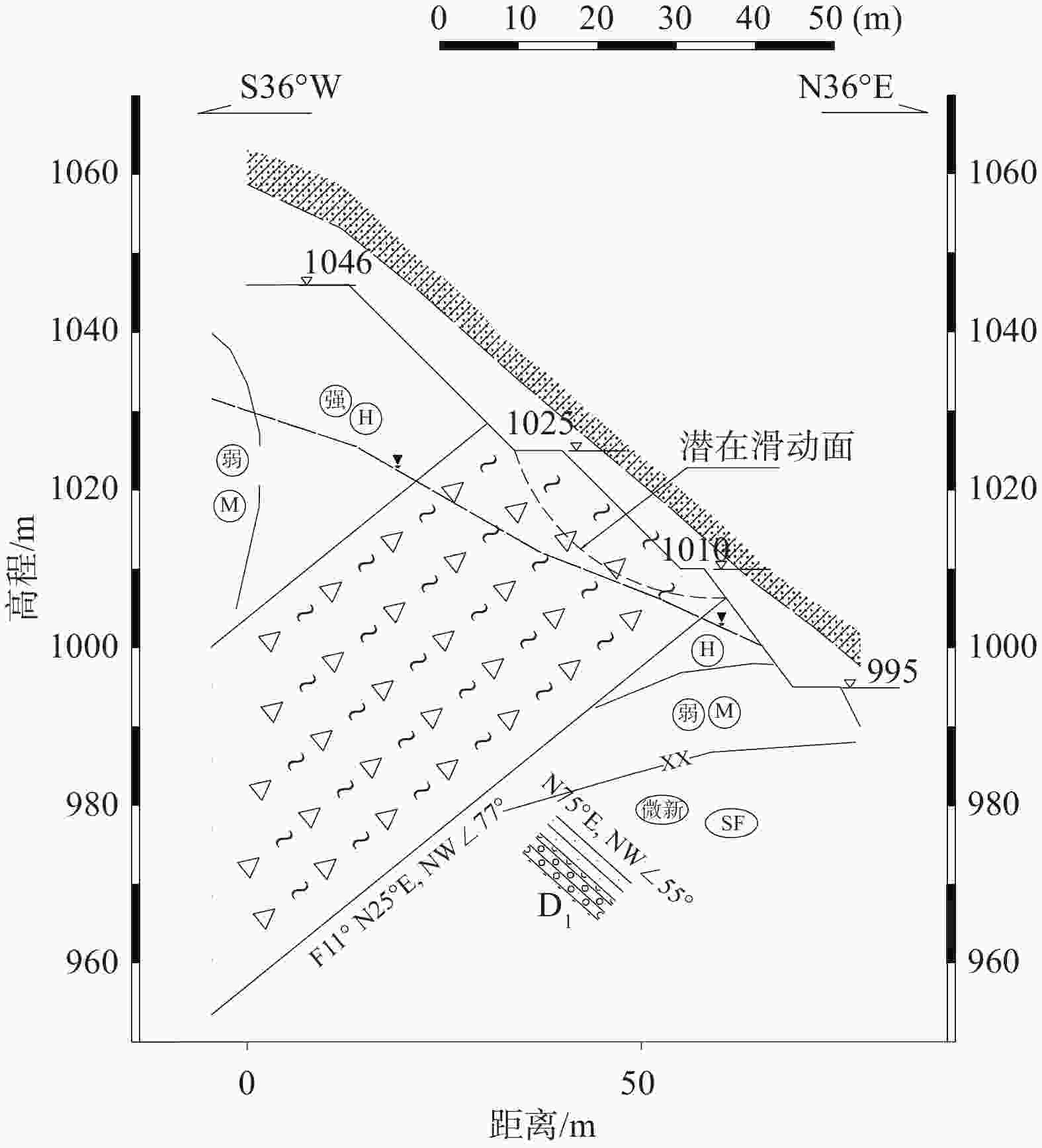 摘要: 东南亚某在建水电站坝址右岸边坡在开挖过程中,不同高程部位产生了一系列的变形破坏现象,主要表现为裂缝、局部滑塌及滑移,已处于临界失稳状态。基于边坡开挖后的实际工程地质条件、现场地质调查及监测成果,总结了该边坡的变形特征,系统分析了变形破坏现象的成因机制。研究结果表明:边坡开挖后形成临空面,应力场重新分布调整,岩体向临空面回弹,加剧了岩体裂隙的张开度以及贯通程度,为雨水入渗提供了良好的通道,使得F11断层中物质吸水软化,产生不均匀变形,致使裂缝以及局部滑塌出现;后期2次强降雨,加速裂隙向深部延伸发展,迅速软化岩(土)体,压缩蠕变累计量大,滑面贯穿形成蠕滑–拉裂型滑坡。研究为边坡后续开挖及支护提供一定的参考。Abstract: A series of deformation and failure occurred at different elevations during the excavation process on the right bank slope of a dam site of a hydropower station under construction in Southeast Asia, which were mainly manifested as cracks, partial collapses, and landslides, and the slope was in a critical state of instability. Based on the actual engineering geological conditions, field geological survey and monitoring data after the excavation of the slope, the deformation characteristics of the slope were summarized and the cause mechanism of the deformation and failure was analyzed. The results show that the free surface is formed and the stress field is redistributed after slope excavation, and the rock mass rebound to the free surface, which intensifies the opening and penetration of the rock mass fissures, and provides a good channel for rainwater infiltration. The material in the F11 fault absorbs water and softens, resulting in uneven deformation, which lead to the cracks and partial landslides. The fracture accelerated its development to the deep and the rock (soil) softens rapidly as well as accumulates a large amount of compression creep due to the twice of heavy rains, the creep slip-pull crack type landslide is formed after the slip surface penetrates. This research could provide a certain degree of excavation and support for the later period.