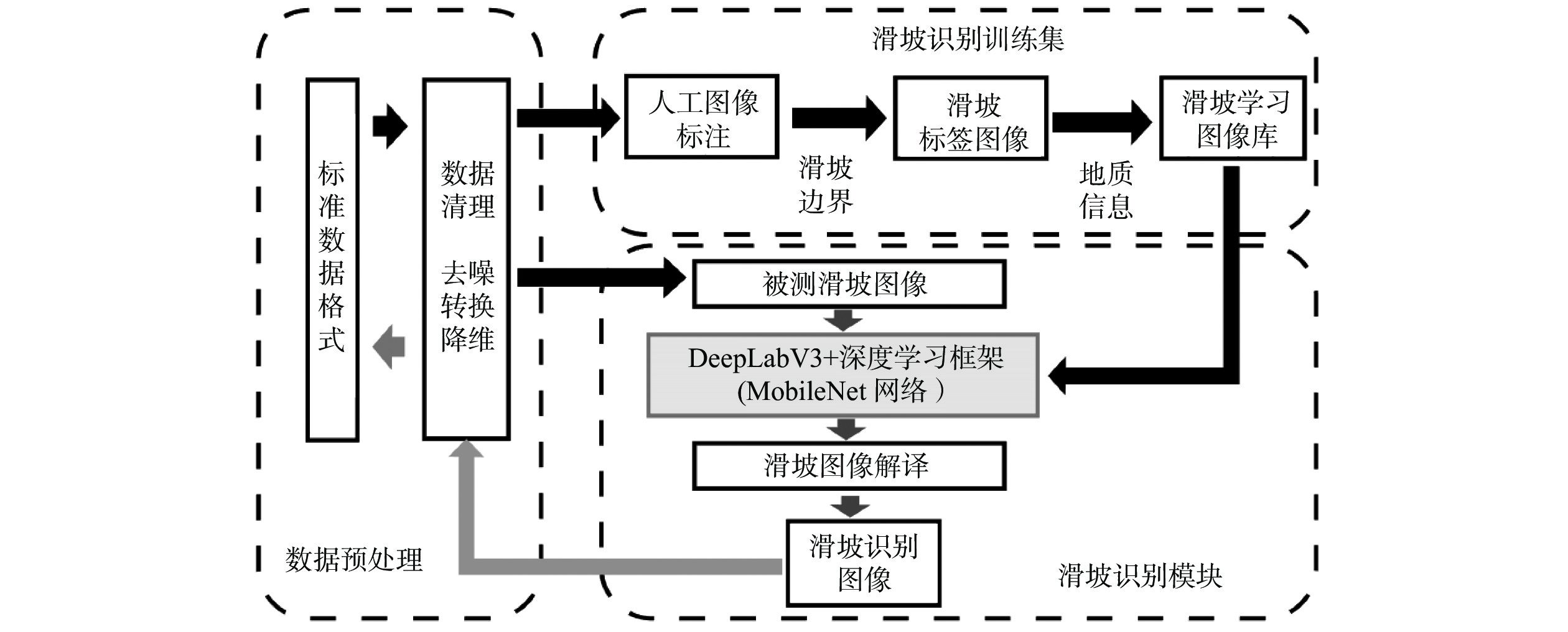 传统的滑坡编录统计通常采用人工现场踏勘形式,效率低下且可能遗漏部分区域。目前,主流的基于图像识别的滑坡编录技术通常需要高性能设备,并需要较高的模型训练成本,因而不适合在滑坡现场快速筛查中应用。本研究引入MoblieNet轻量化模型,使用DeepLabV3架构对航空摄影图像中的滑坡进行快速智能识别和边界定位。与传统的卷积神经网络(CNN)图像分割方法相比,该方法可以在传统方案10%的训练时间内,实现超过90%的准确度,可以更好地契合工程上对于显性滑坡快速智能识别需求,适用于大面积区域滑坡点的快速筛查与编录。