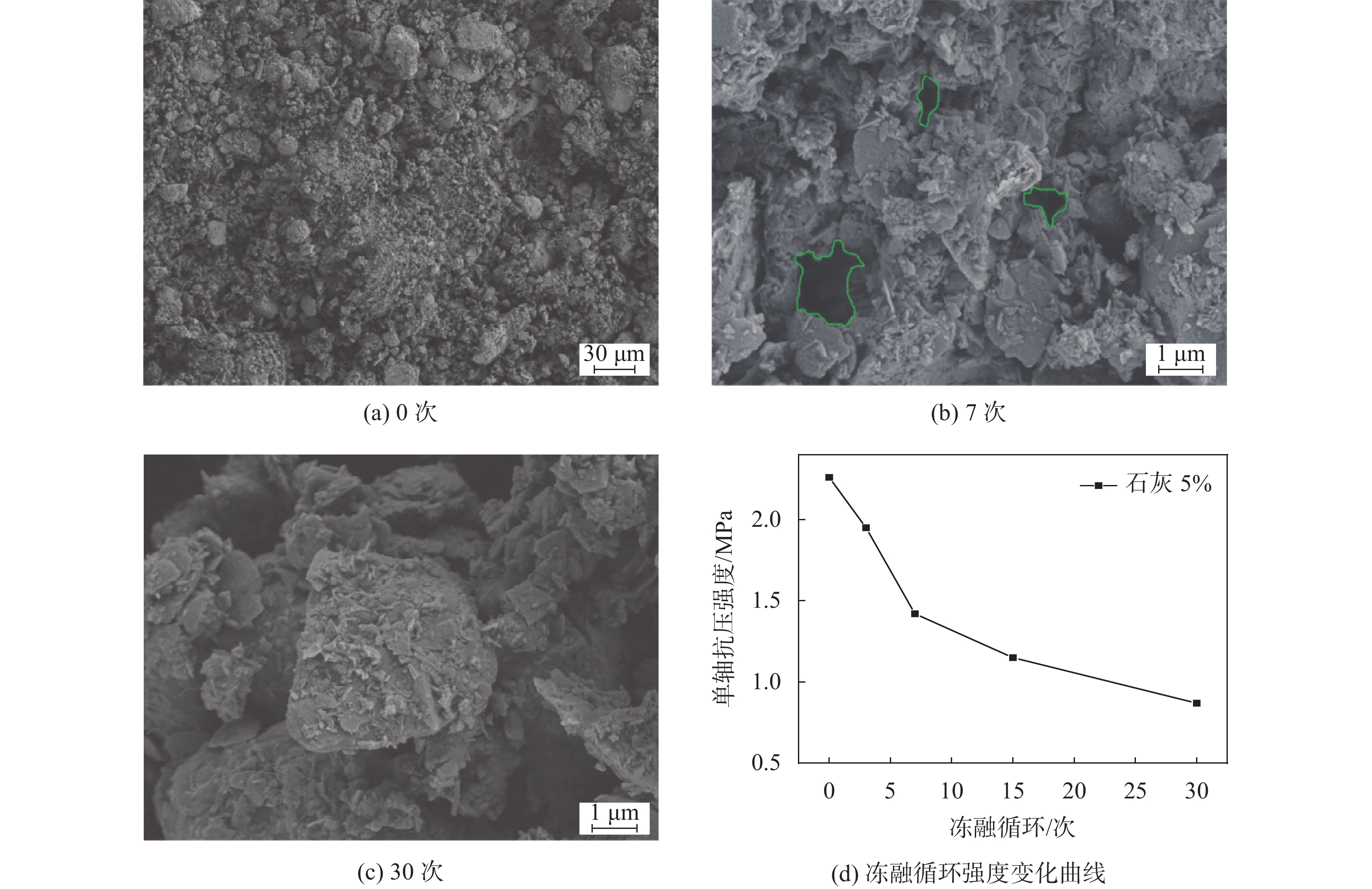 流态固化土常应用于回填工程。为探究流态土受材料、季节性气候影响而导致的力学性能劣化机理,开展冻融循环下预拌流态复合土的细观损伤变化规律研究,通过电镜扫描(SEM)及核磁共振(NMR)试验探究其细观结构变化规律,并对复合材料内部机制进行分析。研究结果表明:冻融循环作用会改变土体的孔隙形态,随冻融循环次数的增加微小孔隙逐渐演化为中、大孔隙;不同材料损伤程度不一,以水泥复合材料的破损程度最小,其次为石灰材料,在水化作用下会形成具有强度的胶结块,是抵抗变形的主要结构部分。该研究成果可为流态固化土材料研发和应用提供借鉴。