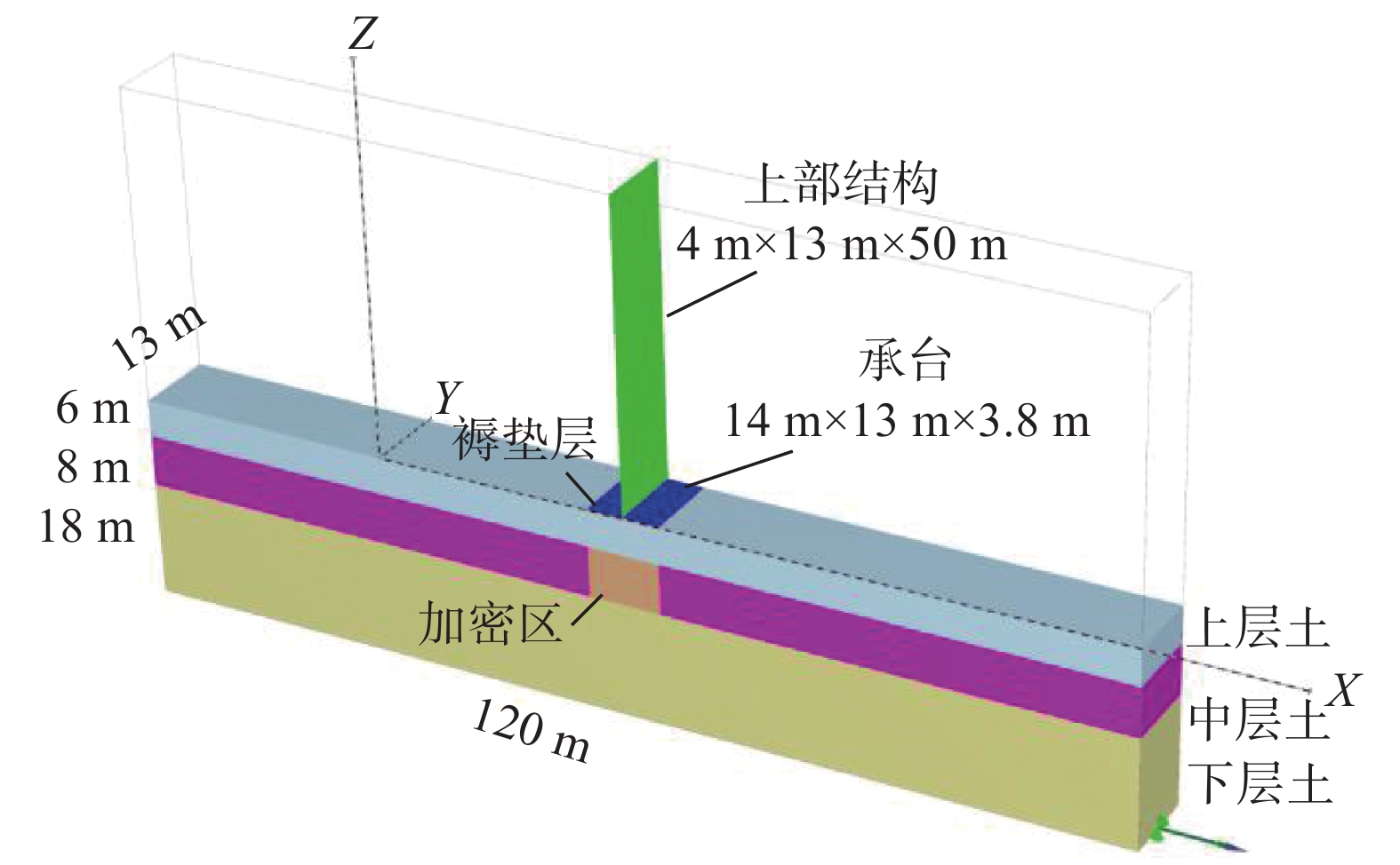 桩基在非基岩区核电厂相关建筑中的应用日益广泛,其水平承载力的确定与优化问题十分重要。考虑土体硬化本构模型并基于勘察资料确定合理取参方法,围绕核电厂工况构建水平承载桩基有限元模型,通过对比模型计算结果与规范经验法计算结果验证了模型的合理性,应用该模型重点分析了各类工程处理措施对桩基水平承载力的影响,研究成果表明:均匀布桩情况下,布桩形式对桩基水平承载力的影响很小,而桩径与桩基水平承载力直接相关;一般压实承台侧土可将桩基水平承载力提升10%以上,但随压实度增加后进一步提升的效果不明显;承台下进行局部土体加固的深度、宽度及加固土体刚度均会显著影响桩基水平承载力,但加固区宽度并非越宽越好;上部淤泥层预固结处理后,可将桩基水平承载力提升10%以上。另外,通过施加以上各类综合处理措施,可将桩基水平承载力提升85%以上。相关成果可为具体工况下桩基水平承载力的预测及优化提供方法路径,为工程前期阶段方案设计提供参考。