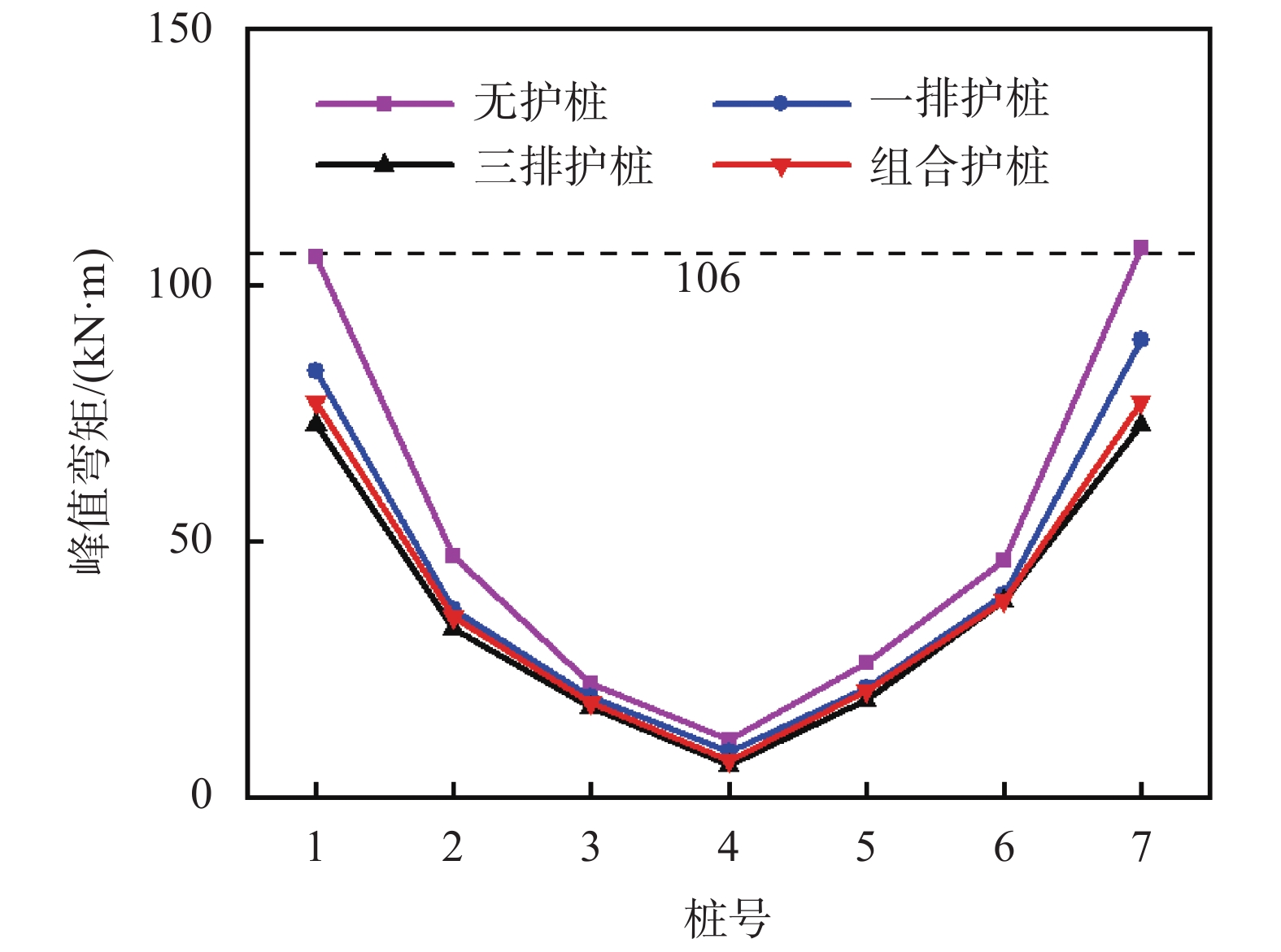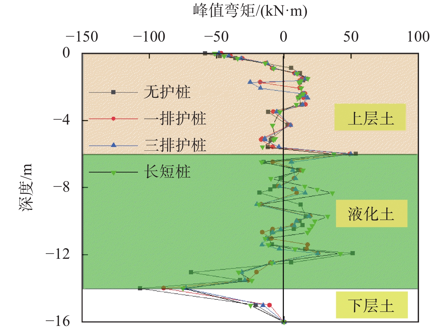 某电厂冷却塔位于黄泛区液化土层,采用刚性桩复合地基,为对其复合地基护桩系统进行优化设计,采用数值分析方法对场地土与刚性桩结构在地震荷载作用下的受力特征和动力响应机制进行研究,探讨不同刚性桩护桩方式对地基抗震性能、变形特性等的影响。结果表明:承台下基桩峰值弯矩出现在最外侧基桩,对应地基底部可液化土层与下部非液化土层交界处;一排、三排和长短组合桩围护时,峰值弯矩分别降低16.7%,31.9%和29.9%;定义基桩峰值弯矩降低百分比与护桩长度比值为护桩效益系数,发现长短桩组合桩型为最具效益桩型,三排护桩工况对应的效益最低;护桩可以降低桩周土整体加速度,改善桩基承台沉降变形,一排护桩、三排护桩和长短桩工况下,沉降分别降低7.75%,24.03%和15.5%。