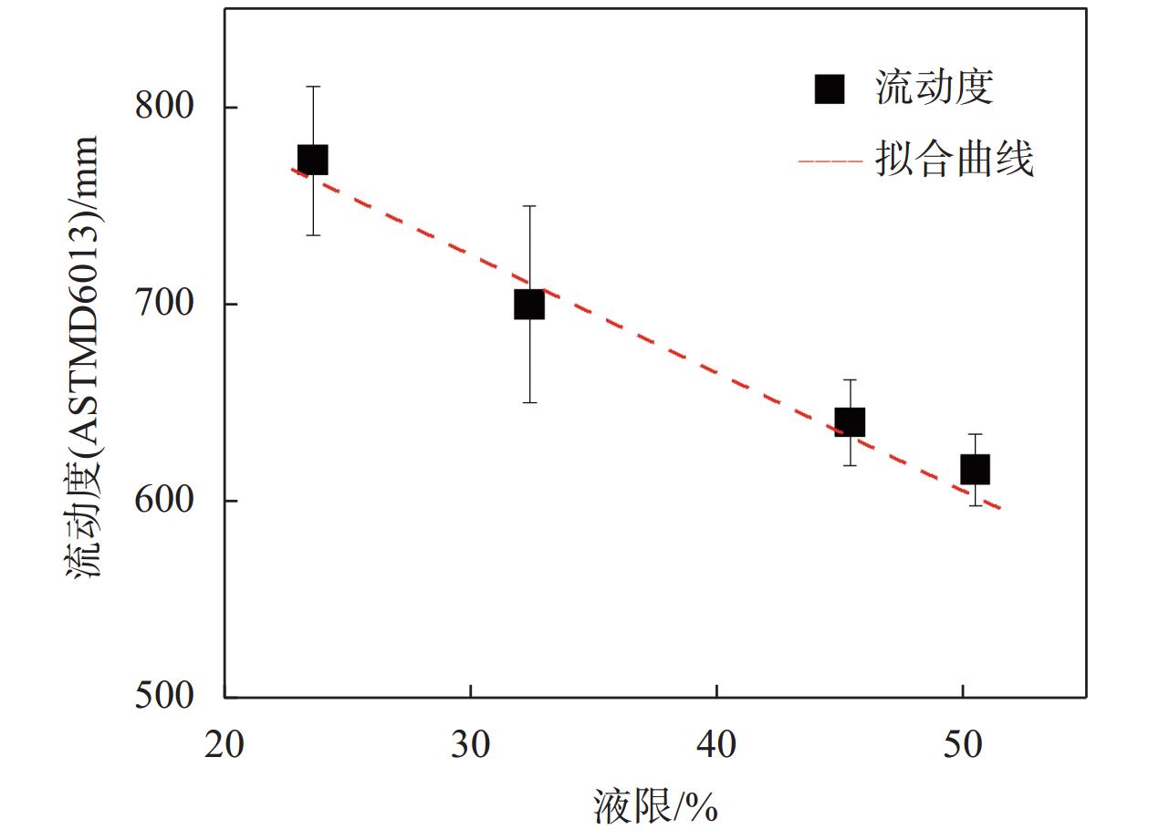 流动性和抗压强度是流态固化土工程应用中的关键技术指标,决定了流态固化土的和易性和工作性能。泵送施工中可通过减小湿密度,适当提高流态固化土流动性,以满足设备要求。以两种土性的工程弃土为母土,控制湿密度在1.4~1.6 g/cm3,制备高流动性流态固化土,重点研究土性和湿密度对流态固化土流动度、泌水率、抗压强度的控制规律及作用机制。研究表明:流态固化土的流动度和泌水率主要受土性影响,母土液限越高,其流动度相对越低,泌水率相对越小,固化剂掺量和种类对其影响相对不显著;抗压强度主要受湿密度和固化剂影响,湿密度越高,流态固化土强度相对越大;高流动性流态固化土自凝阶段,因水化反应尚未充分,土颗粒、土−固化剂水化产物存在自重沉降,出现不同程度泌水,导致同一固化土试样抗压强度沿深度不均匀的现象,微观结构上表现为大孔隙逐渐被水化产物填充,胶结作用更为充分,中小孔隙依次增多,土体结构更为密实。