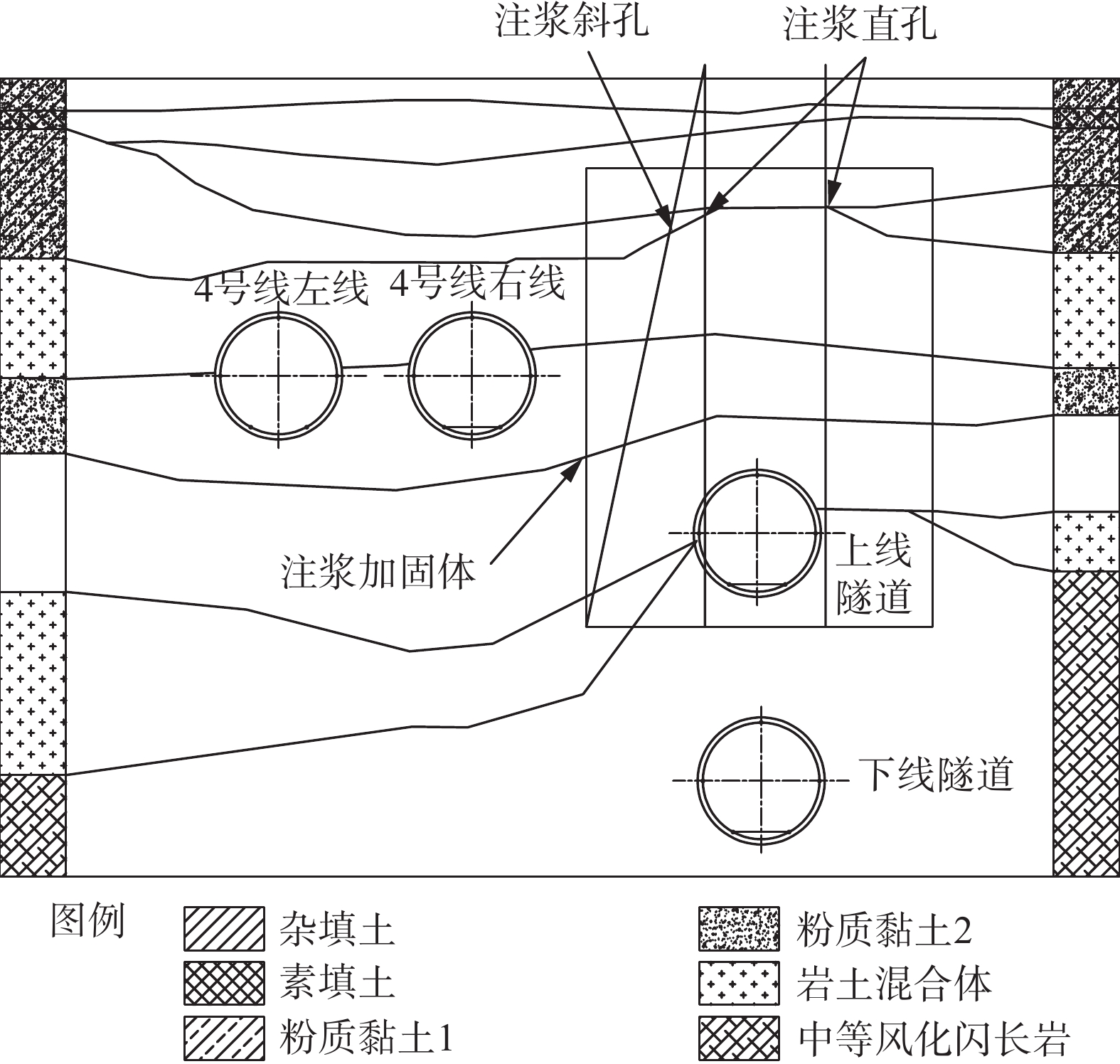 针对盾构同步注浆中易发生的浆液稀释、离析等问题,通过分析实际工程案例,确定浆液配比后进行室内试验,采用SPSS及MINITAB分析试验结果,并结合MATLAB开展符合施工要求的浆液配比优化研究。分析表明:浆液水胶比集中在0.6~0.9,胶砂比集中在0.4~1.0,膨水比集中在0.1~0.3,灰粉比集中在0.2~0.6;水胶比对密度和稠度影响较大,膨水比主要影响流动度、泌水率和固结收缩率,灰粉比对凝结时间和强度影响显著;与MATLAB工具箱求解器的fmincon函数相比,改进的多目标遗传算法(NSGA-Ⅱ)优化结果精度更高,经优化得到最优配比:水胶比0.60、胶砂比0.87、膨水比0.25、灰粉比0.60。基于此,对北京12号线某盾构区间施工进行验证分析,结果表明相较于已有方案,基于多目标优化的浆液在地层变形控制上效果更优。