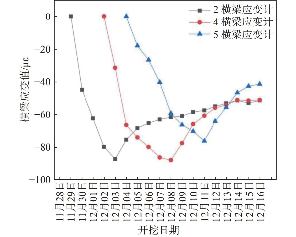 沈阳某地铁车站采用PBM工法开挖,以该暗挖工程为背景,介绍了PBM工法现场施工关键技术及措施,通过现场监测和数据分析,研究了PBM工法车站开挖过程引起的地表沉降、结构变形和应变的变化规律。研究结果表明:该车站PBM工法施工引起地表最终沉降最大值约25 mm,沉降控制水平较好;整体结构变形及应变处于安全范围,表明PBM工法整体结构布置合理。在负一层的开挖及结构浇筑中,应减小开挖步距和顶板注浆的速度,以减小对上覆管线的扰动;当负一层开挖施工到中部横梁时应适当减缓开挖速度,加强临时支护,从而更好地控制横梁竖向变形。