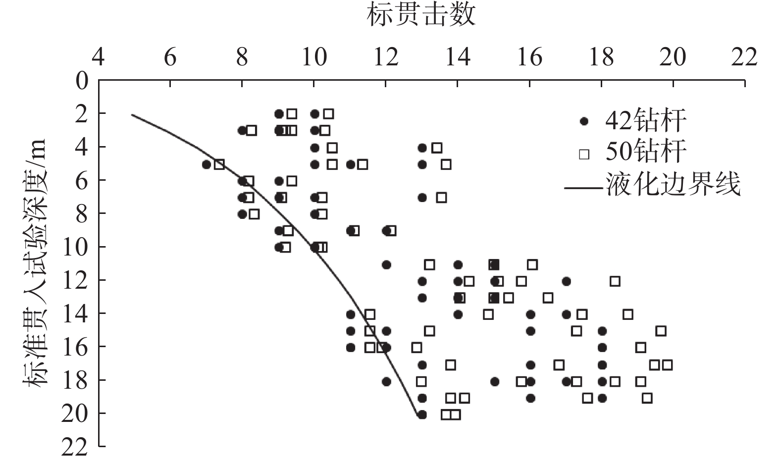 目前西安地区进行标准贯入试验(SPT)大多使用ϕ50型钻杆,与规范规定的ϕ42型钻杆有所差异。选取西安地区三处工程场地,分别在砂土和黄土状粉土地层中进行两种钻杆直径标贯击数N值对比试验,统计分析了两种杆径测得标贯击数的相互关系及对液化判定的影响。结果表明,钻杆直径对标贯试验击数N值的影响,在不同地层和不同试验深度下结果不同。10 m深度范围内,ϕ50钻杆和ϕ42钻杆测得标贯击数N值较为接近,砂土层中比值N50/N42介于0.98~1.02,黄土状粉土层中比值N50/N42介于1.01~1.05;10~20 m范围内,两种杆径测得标贯击数N值偏差较大,两类土层中比值N50/N42分别介于1.03~1.05和1.05~1.10。此外,采用ϕ50钻杆和ϕ42钻杆数据进行砂土和黄土状粉土地基土液化判定时整体上均为不液化,但在液化边界线附近局部区域,ϕ42钻杆标贯数据判别为液化时,ϕ50钻杆标贯数据判别结果为不液化。